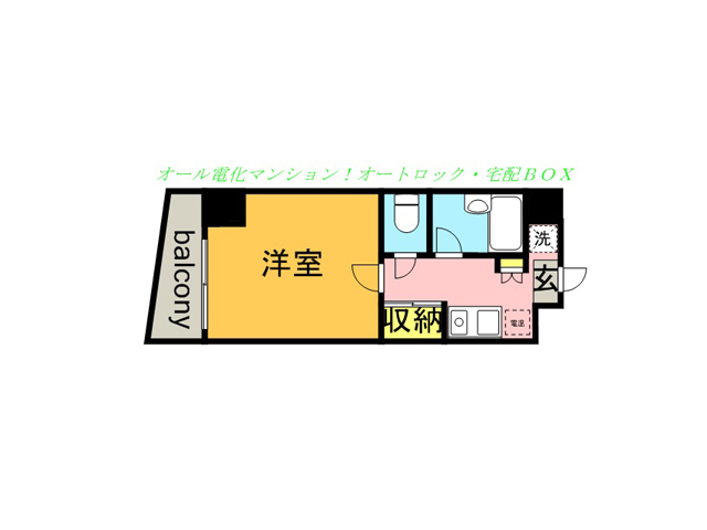 | 物件設備 | 給湯(電気),シャワー,バルコニー,エアコン,オートロック,エレベータ,フローリング,CATV,宅配ボックス,室内洗濯置場 |