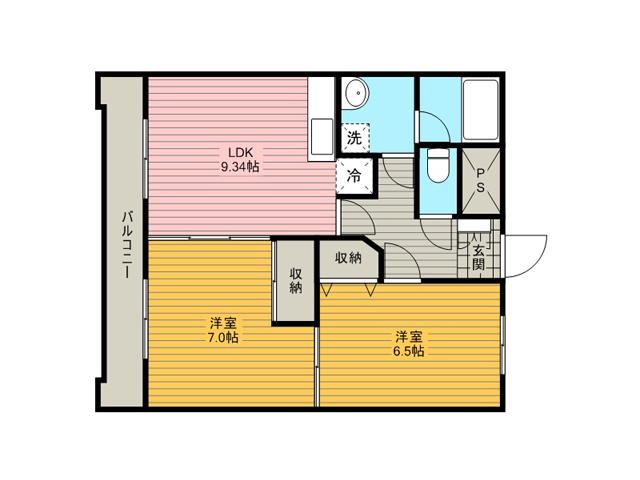 クローゼット、押入れ、冷暖房、フローリング、バルコニー、